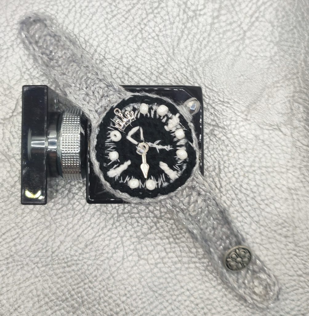 • Handmade crochet watch with black, embroidered dial