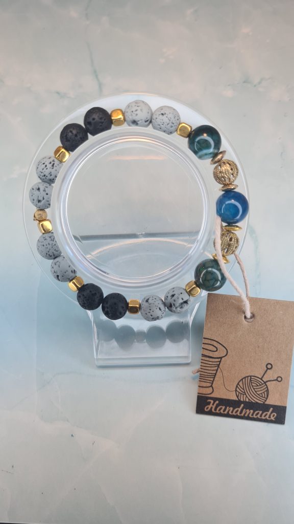 • Aromatherapy diffuser style bracelet with lava beads for scent