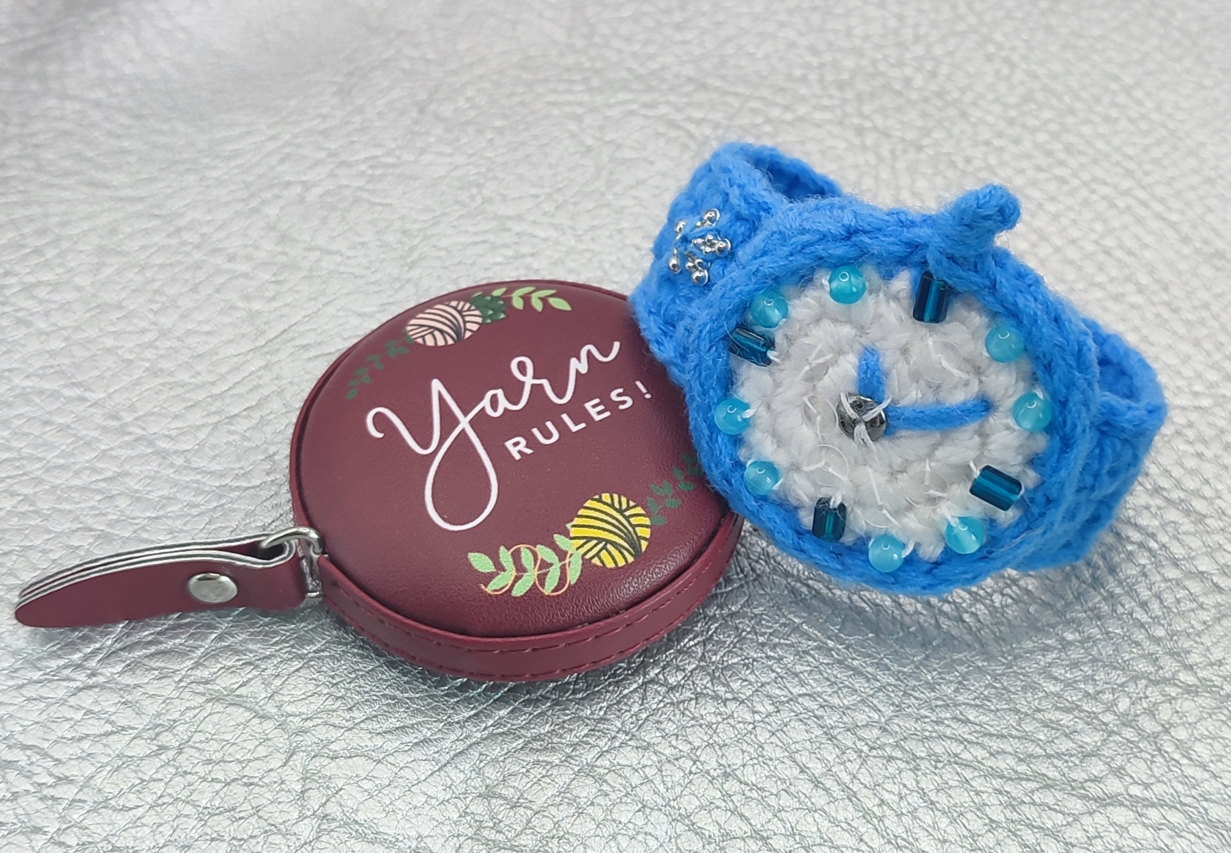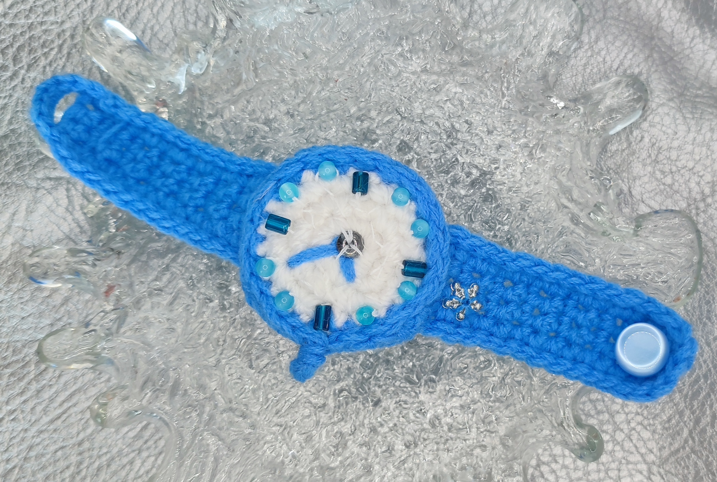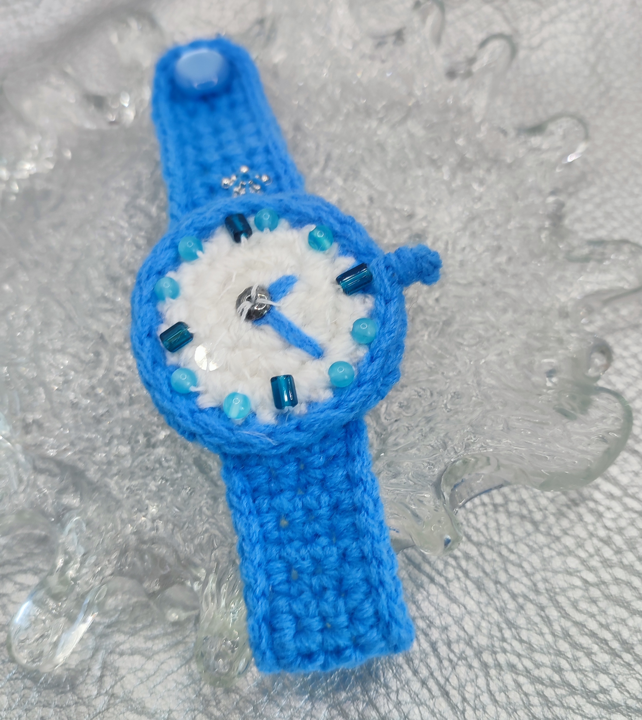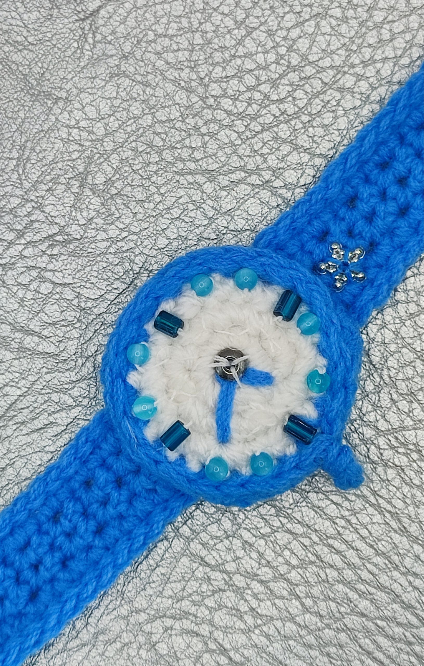 Hi! Looking for something adorable for your little one’s accessory collection? This crochet baby watch is here to charm! This watch is lovingly made from soft, cute yarn and decorated with playful blue beads (cat’s eye stone), hematite and Czech glass beads that will capture every child’s imagination. And let’s not forget the shimmer of the French sequins that make this watch truly sparkle! Whether it’s for a special occasion or just because, this watch will be a stunning gift that they will treasure.